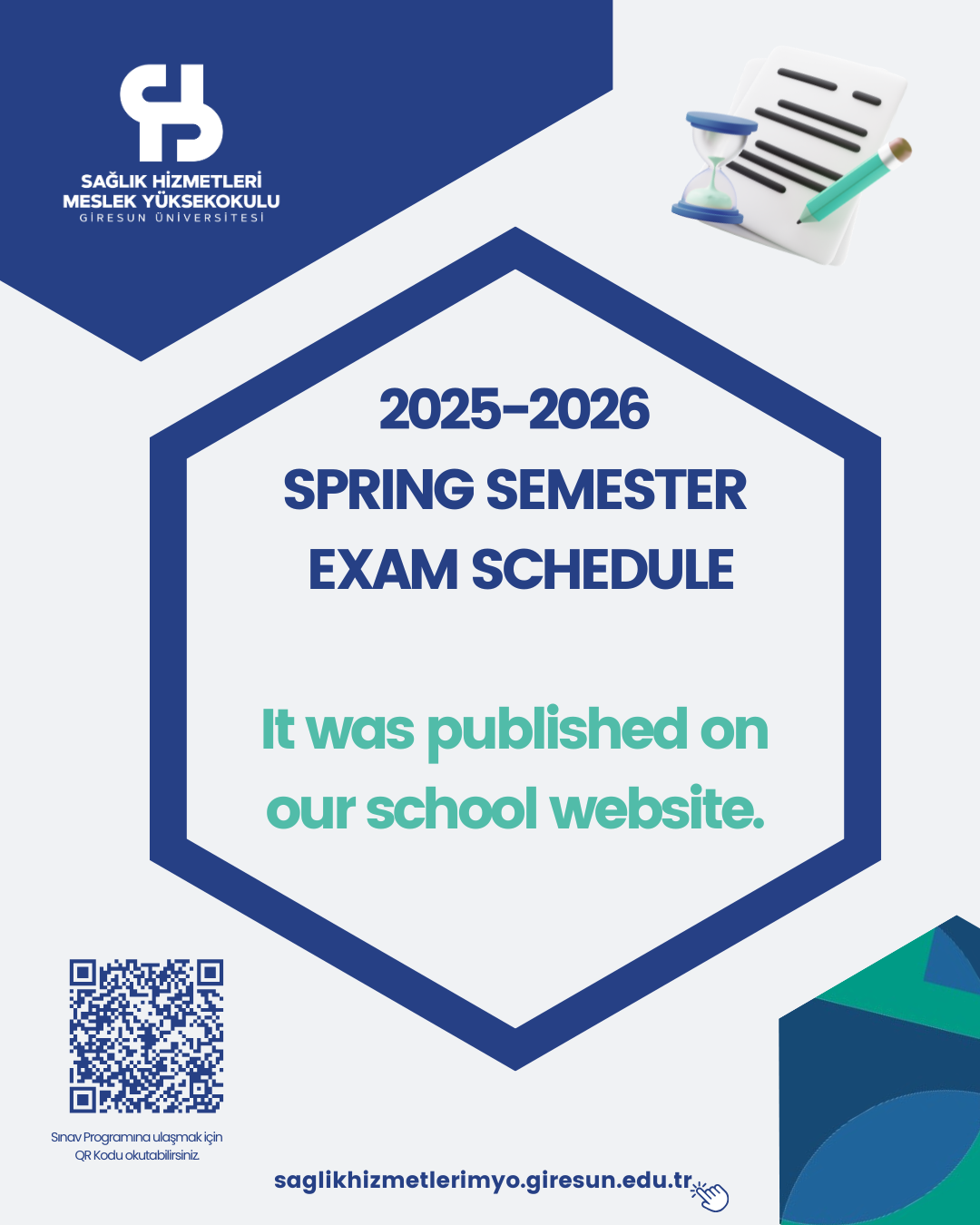 The MIDTERM, FINAL, and RESIT exam schedules for the departments of Giresun University Vocational School of Health Services have been announced.