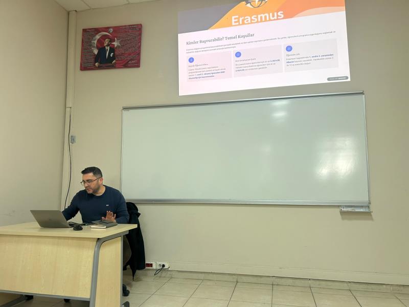 Toplantıda Erasmus+ programlarına başvuru süreçleri, program kapsamındaki fırsatlar, hibe destekleri ve yurt dışı deneyimi kazanmanın kariyer gelişimine sağlayacağı katkılar hakkında bilgiler verildi.