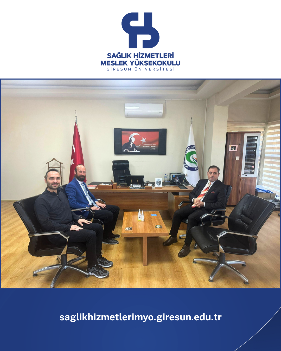 30 Ekim 2025 tarihinde Giresun Vali Yardımcısı Sayın Alpaslan ALTINIŞIK, Sağlık Hizmetleri Meslek Yüksekokulu Müdürümüz Prof. Dr. Aytaç GÜDER’i makamında ziyaret etti.