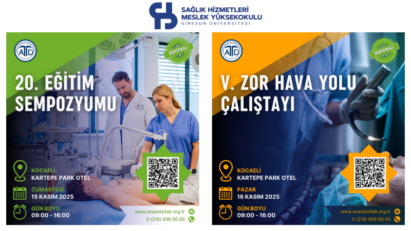 Anestezi Teknisyen ve Teknikerleri Derneği tarafından 15–16 Kasım 2025 tarihlerinde Kocaeli Kartepe Park Otel’de düzenlenecek olan 20. Eğitim Sempozyumu ve 5. Zor Havayolu Yönetimi Çalıştayına öğrencilerimiz davetlidir.