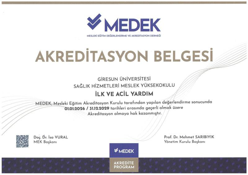 Giresun Üniversitesi Sağlık Hizmetleri Meslek Yüksekokulu bünyesinde yer alan İlk ve Acil Yardım Programı, 2011 yılında kurulmuş olup, 2013-2014 eğitim-öğretim yılında ilk öğrencilerini kabul ederek eğitim faaliyetlerine başlamıştır.